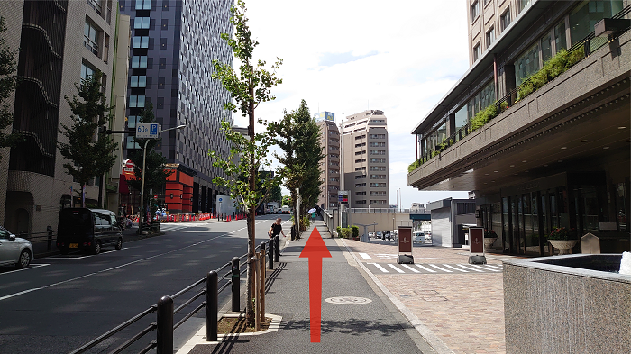 左右にホテルが見えてきますので、さらに真っ直ぐ進みます。