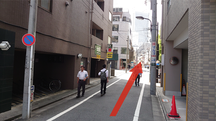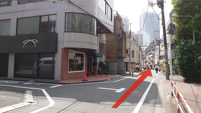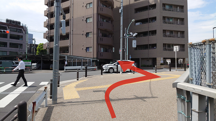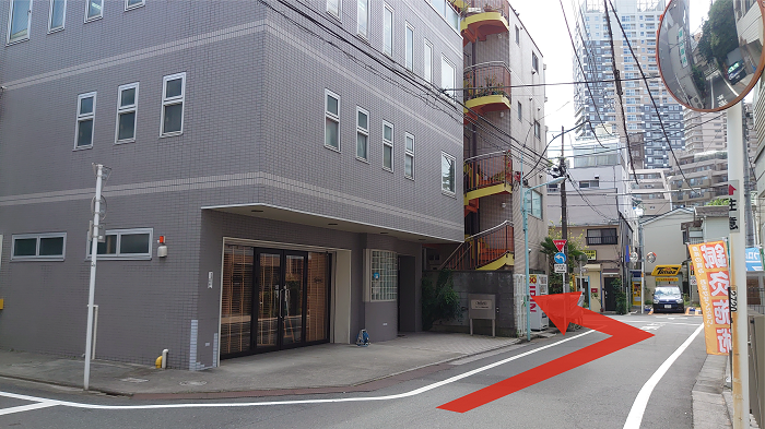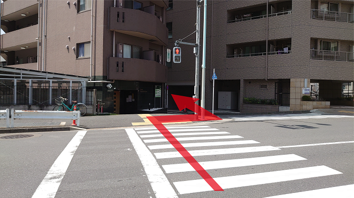 横断歩道を渡った先にあるマンションの間のわき道に入ります。